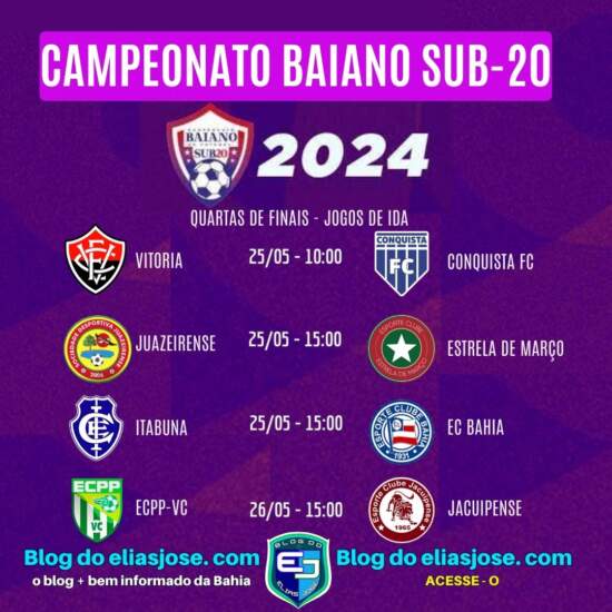 A federação baiana de futebol definiu a programação das quartas de final do Baianão Sub-20 2024. Oito clubes seguem na disputa da competição.