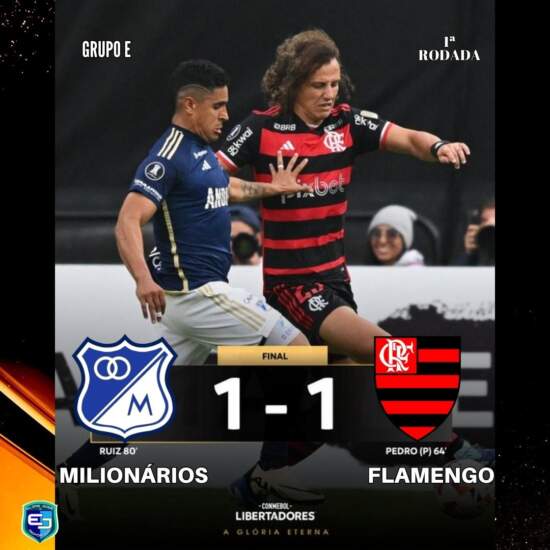 O Flamengo visitou o Milionários nesta terça-feira(2) abrindo a primeira rodada do grupo E da Libertadores. Apesar de jogar parte do segundo tempo com um jogador a mais, o rubro negro não conseguiu estrear com vitória e apenas empatou, pelo placar de 1 a 1, na Colômbia.