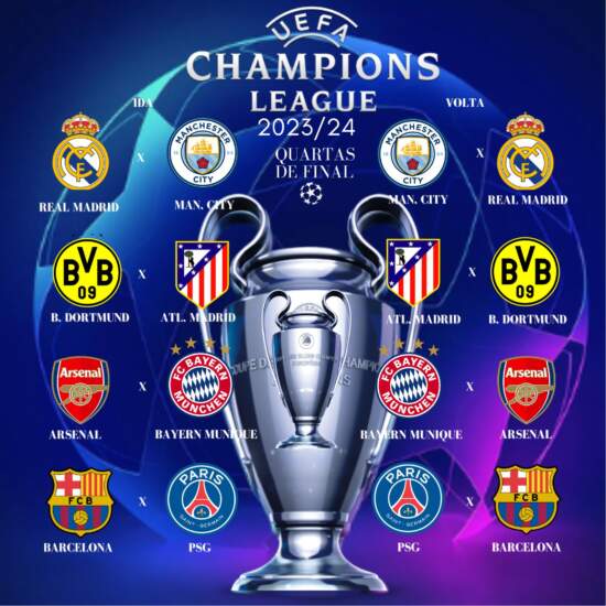 Os confrontos das quartas de final da Champions League 2023/24 foram sorteados nesta sexta-feira(15), e as bolinhas definiram que os dois últimos campeões europeus se enfrentarão: Real Madrid x Manchester City disputarão uma vaga nas semifinais, com os ingleses decidindo em casa no jogo de volta. O PSG enfrentará o Barcelona e o Arsenal duelará com o Bayern de Munique e Atlético de Madrid x Borussia Dortmund é o outro confronto.