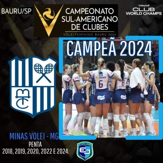 Minas conquista no tie-break depois de perder os dois primeiros sets, o quinto título sul-americano de clubes ao vencer o Praia Clube por 3 sets 2 na tarde deste domingo (18) no Ginásio na Arena Paulo Skaf em Bauru com parciais 22/25, 19/25, 25/16, 26/ 24 e 15/11. Com a conquista o Minas ultrapassa o Rio/Sesc, se iguala ao Deportivo Power do Peru com cinco títulos e se aproxima do maior campeão do torneiro o Fluminense com Seis taças.