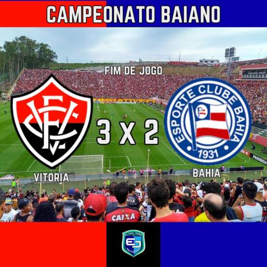 Em partida com duas viradas, o Vitória venceu o Bahia por 3 a 2 neste domingo (18), no Barradão. Osvaldo (duas vezes) e Alerrandro marcaram para o Leão, enquanto Thaciano e Osvaldo anotaram para o Tricolor. A partida foi pela sétima rodada do Campeonato Baiano.