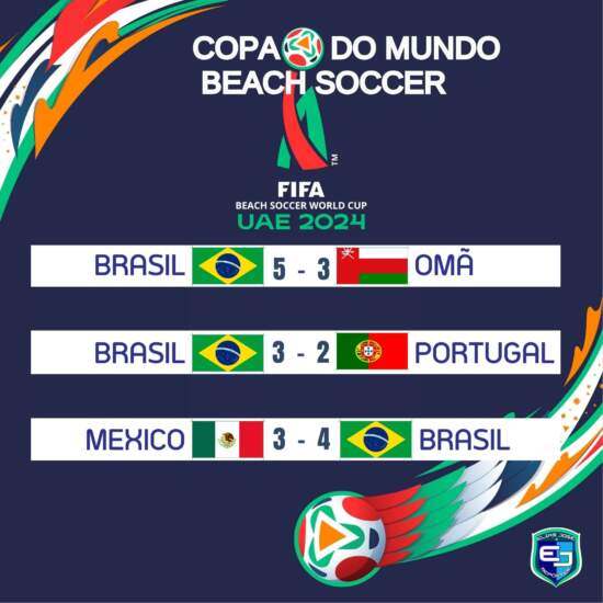 O Brasil terminou a fase de grupos na 1ª colocação do Grupo D da Copa do Mundo FIFA de Beach Soccer – Dubai 2024, após vencer o México, nesta terça-feira (20), por 4 a 3. Foi mais um jogo emocionante, onde a seleção mostrou toda sua garra até o fim! O gol da vitória saiu restando décimos de segundo para o fim do Tempo Extra, em um lindo voleio de Edson Hulk.