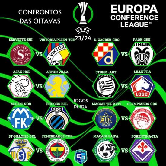 A Uefa sorteou nesta sexta-feira (23) os confrontos das oitavas de final da Europa Conference League A definição dos jogos aconteceu em Nyon, na Suíça, na sede da entidade. As oitavas de final contam com os oito times classificados em 1º lugar na fase de grupos, que enfrentarão os vencedores do play-off da fase eliminatória.